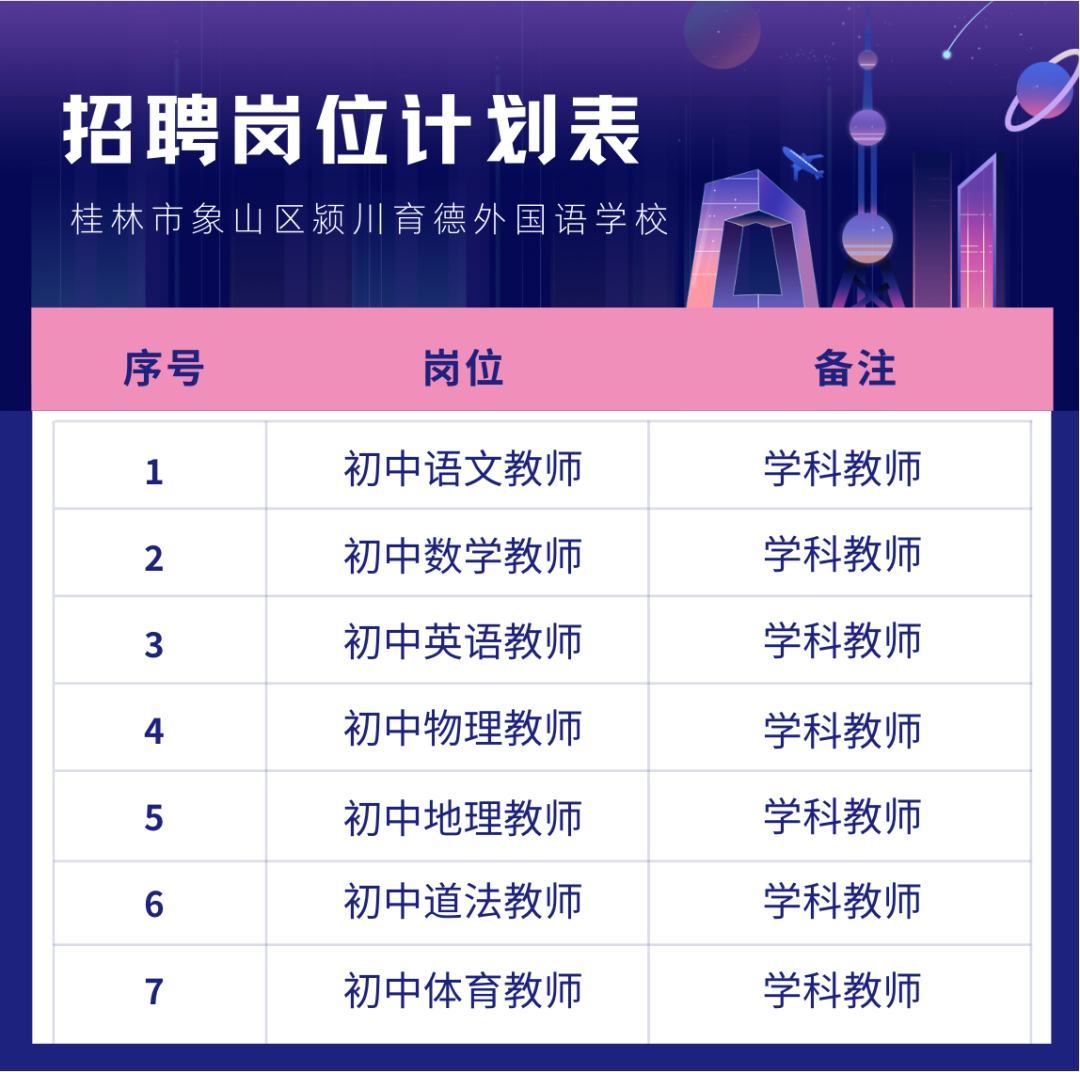 招聘條件:具有大學本科或以上學歷;具備專業(yè)對口的相應從業(yè)資格證;年齡在25-45周歲(特別優(yōu)秀的年齡可適當放寬);有班主任管理經(jīng)驗、有特長和在公、民辦學校有任教經(jīng)驗的優(yōu)先錄用。