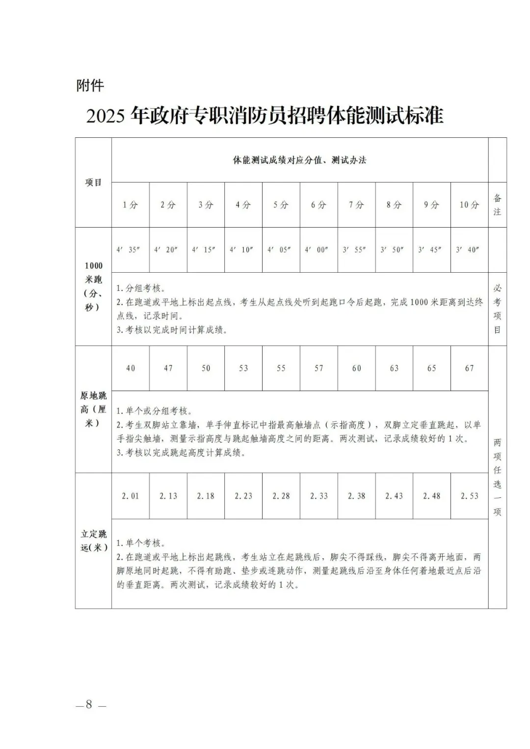 附件2:體能標(biāo)準(zhǔn)測(cè)試標(biāo)準(zhǔn)