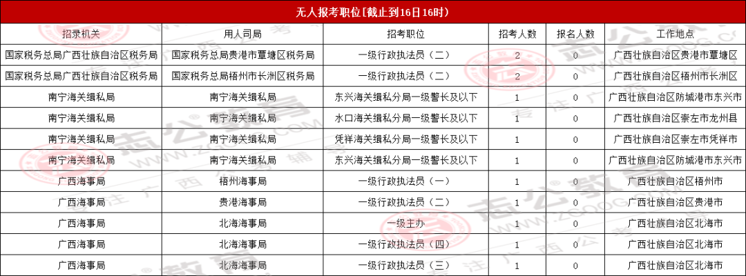 考生們注意!截至10月16日16時,2026國考(廣西)地區(qū)還有71個無人報(bào)考,占全部748個職位的9.49%。想避開激烈競爭的話,不妨結(jié)合自己的條件,多看看這些冷門崗位~